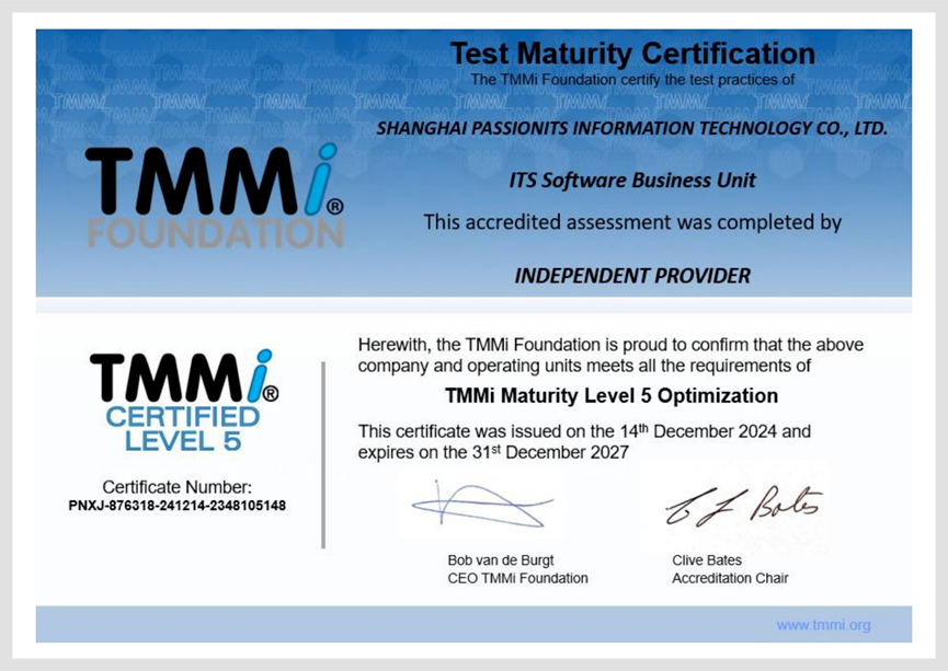 近日,佩信集团旗下的数字科技品牌佩企科技,成功通过了TMMi 5级认证,并荣获证书,这一认证标志佩企科技在软件测试和质量保障方面的技术实力、服务品质、管理水平得到了国际权威机构的充分肯定。