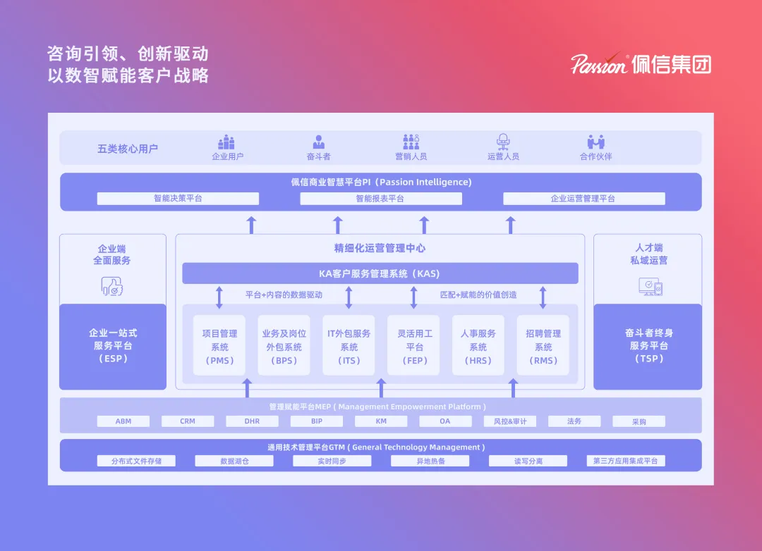 佩信集团深耕中国市场,十余年来见证并深度参与中国企业的转型和创新进程。数字化转型和可持续发展是企业当前面临的两大关键任务,也是企业增强韧性、夯实核心竞争力的重要途径。佩信集团以技术DNA不断向各垂直行业加速推进技术创新,成为IT服务领域中的人力资本专家,以及人力资源服务的科技赋能者。这一差异化定位推动佩信构建“科技+人才”的双轮驱动生态。