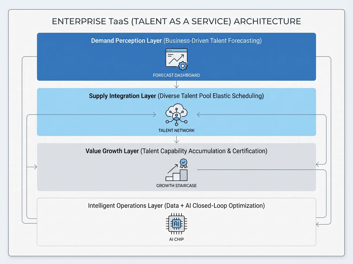 为此,佩信集团推出 TaaS(Talent as a Service人才即服务)模型,将人才视为可配置、可升级、可度量的服务单元,协助企业构建以能力为核心、以弹性为特征、以体验为驱动的人才运营体系——其本质,是将每一次人力配置都视为对人力资本的投资,通过技术与机制的双重创新,最终转化为组织的韧性、效率与创新力。