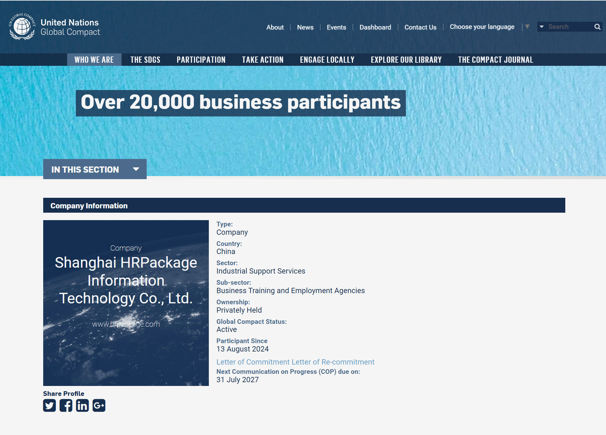 继2024年成功加入联合国全球契约组织后,佩信集团日前再度通过联合国全球契约组织(UNGC)审核,持续以成员身份参与全球可持续发展进程。