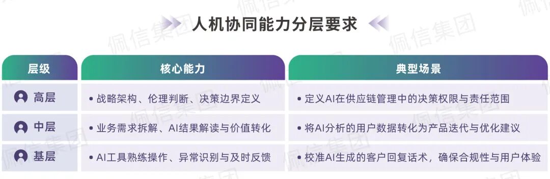 这种“赋能”导向的转型,可缓解员工焦虑,并激发创新活力。未来,每位员工都有望成为“智能体主管”。对此,佩信集团建议企业应该做如下行动: