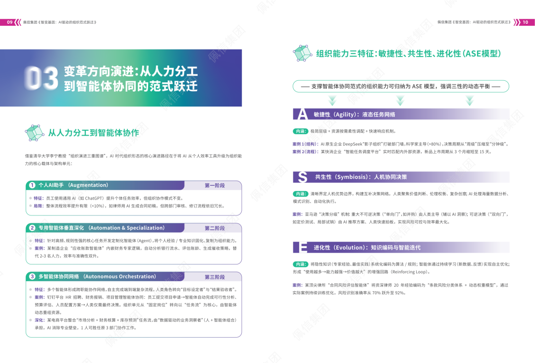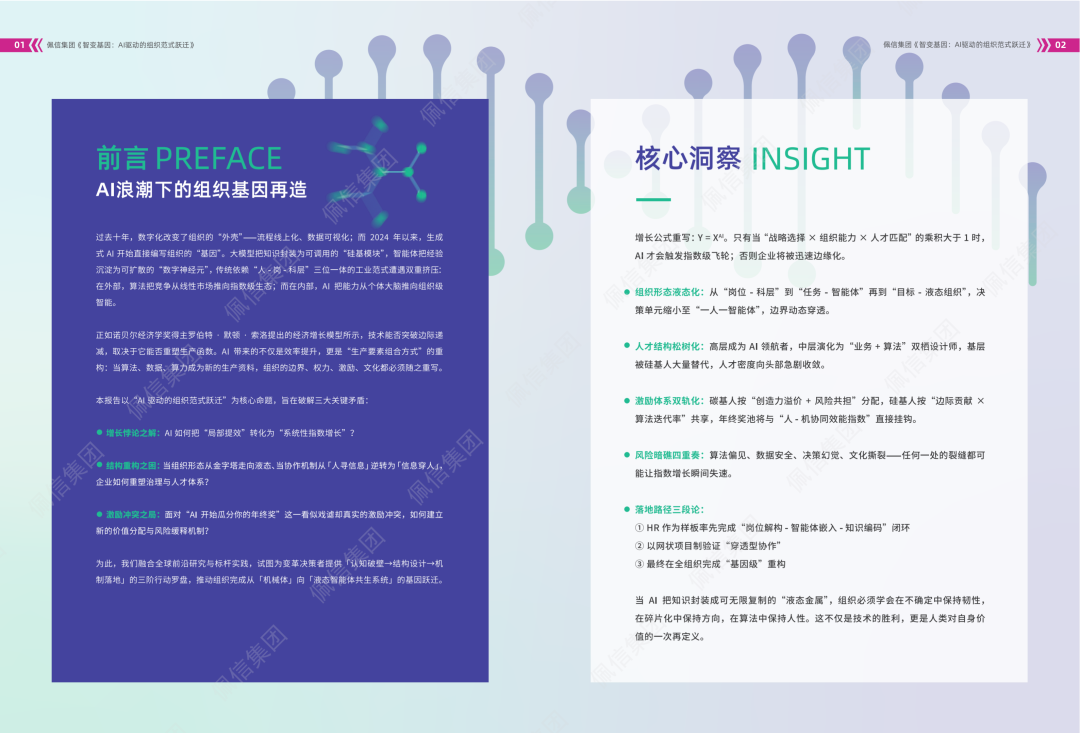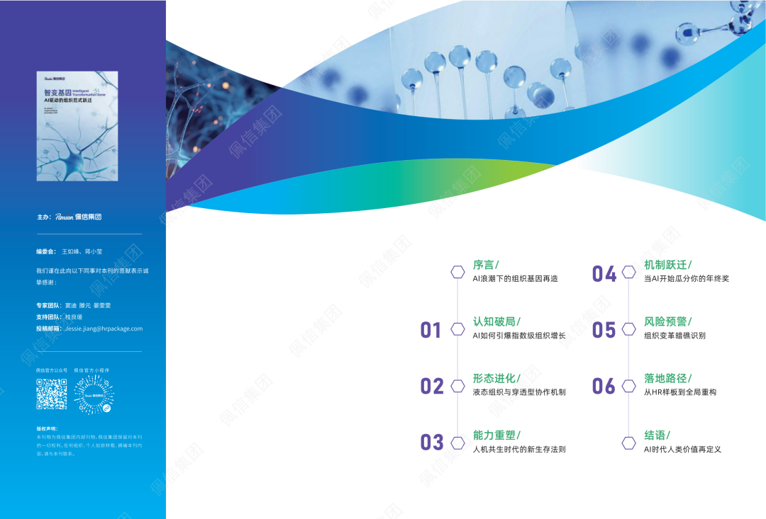 佩信集团最新研究报告《智变基因:AI驱动的组织范式跃迁》正式发布。报告融合全球前沿研究与标杆实践,试图为变革决策者提供「认知破壁→结构设计→机制落地」的三阶行动罗盘,推动组织完成从「机械体」向「液态智能体共生系统」的基因跃迁。以下为您精炼解读报告核心洞察。