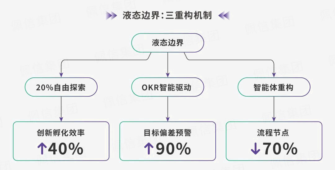 组织边界不再是固化的“围墙”,而是呈现“液态”特征——可渗透、可流动、可重组。其核心支撑机制包括“20% 自由探索时间”、OKR 驱动的目标管理,以及智能体(Agent)对流程的根本性重构。