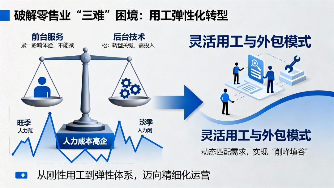 然而,单纯裁员或冻结编制并非长久之计。一方面,前台服务岗位(如店员、收银、配送)直接影响客户体验,人员不足将直接损害品牌口碑;另一方面,后台支持与技术岗位又需持续投入以支撑数字化转型。这种“前紧后松”的结构性矛盾,使得企业陷入“人效提升难、成本压降难、人才留住难”的三难境地。