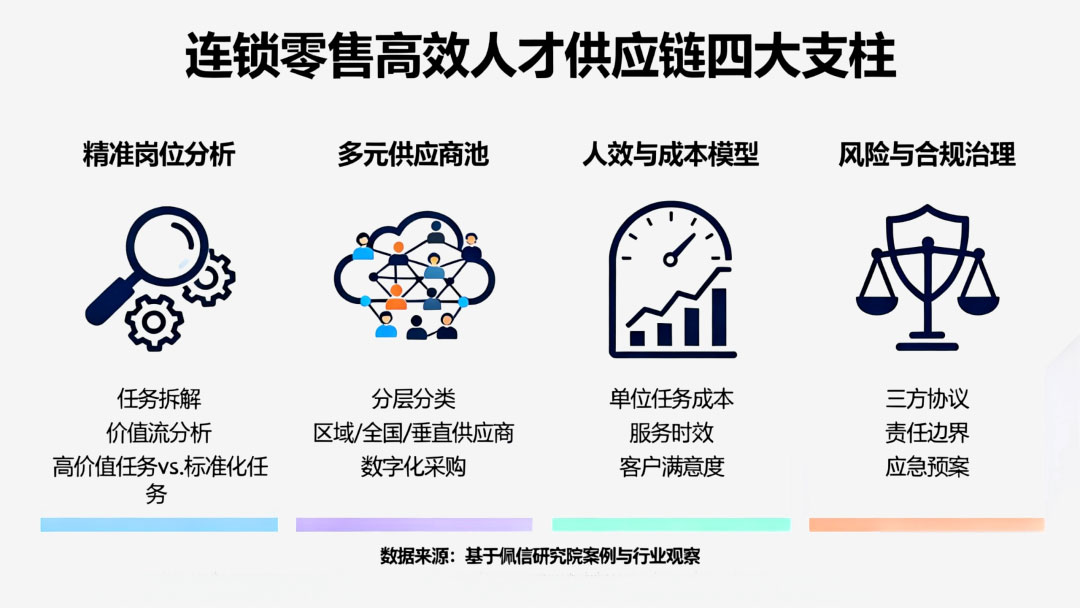 基于佩信研究院的案例与行业观察,我们总结出连锁零售企业构建高效人才供应链的四大关键支柱: